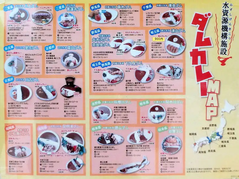 日本各地のダムカレーが食べられる場所のマップ。