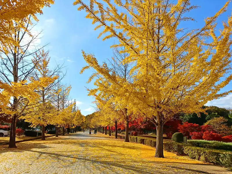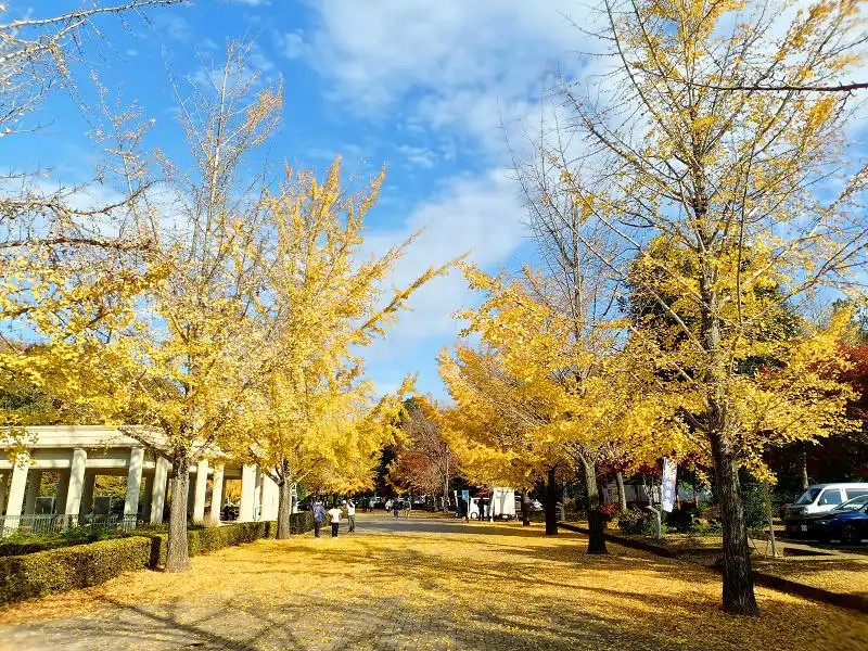 イチョウがキレイに色づいているので駐車場にバイクを停めて散策します。