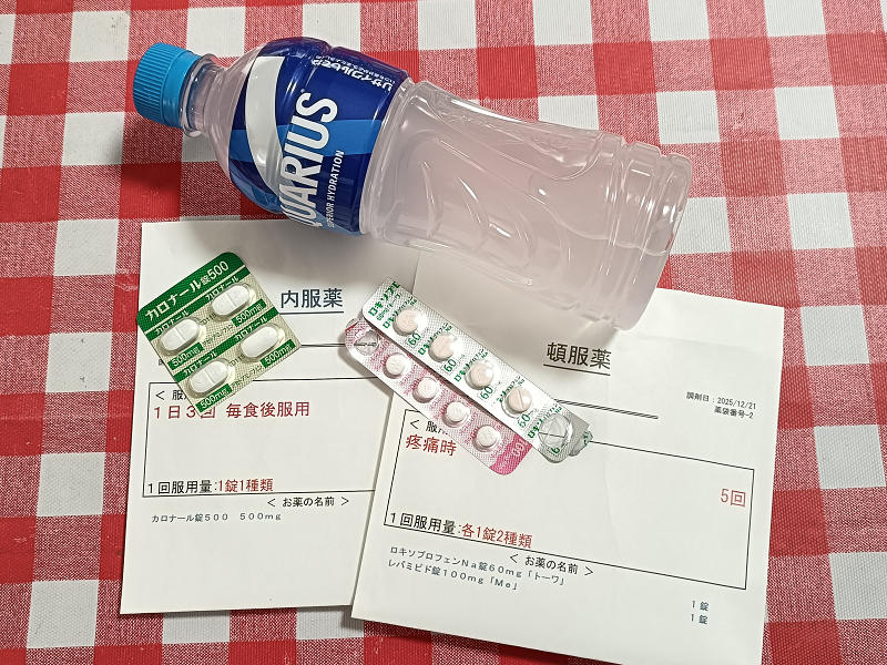 でも痛みはあいかわらずのレベルでしたので、先生に無理を言ってロキソニンを処方してもらいました。