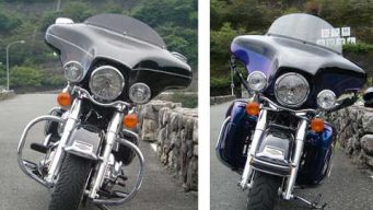 ファントムフェアリング やっこカウル、キングツアパック、ロワーフェアリング、マフラー左右出しのFLSTCとウルトラとの比較画像 2013.12.09 ファントムフェアリングハーレーカスタムロワーフェアリングマフラー交換ツアーパック