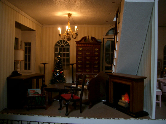 途中で全体をピンクに塗装し直して一応の完成を見たのですが、その後何年かしてから全体の雰囲気をクリスマスバージョンにして、内部の照明も一部手直ししたのがこちらです。