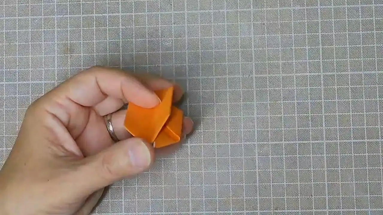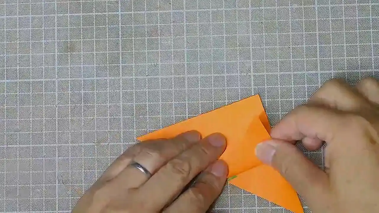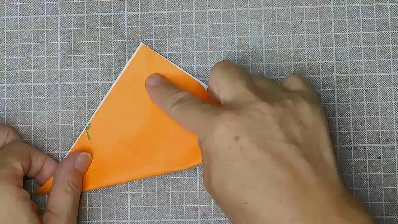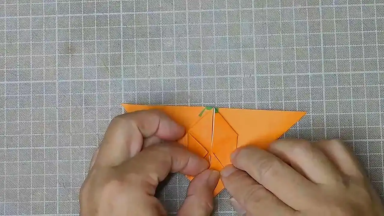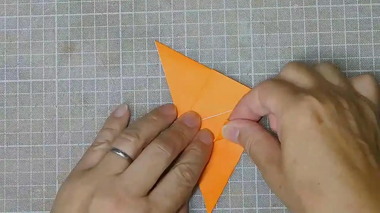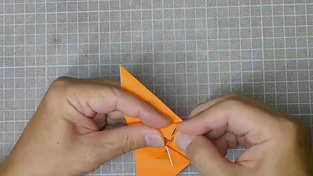 とがった部分を小さい三角に折ります。 反対側も。