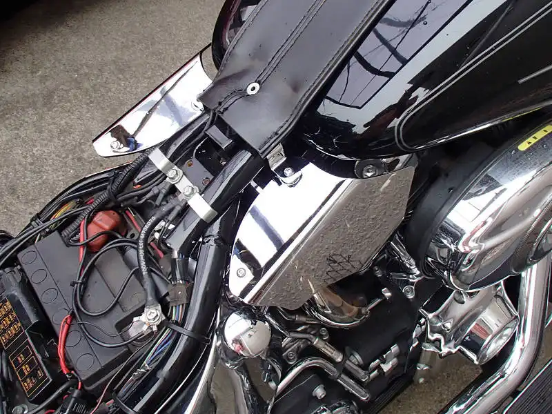 その次の対策はエンジンから上がってくる熱を防ぐためのカバー、サドルシールドでした。