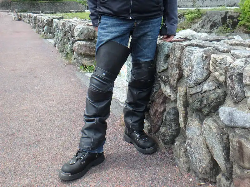 ハーレーではチャップスという乗馬でもよく使われる股から上のない革のパンツがありますがあれの短い版です。