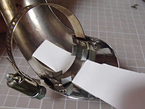これをヒートガードとクランプの間にはさんで取り付ければ隙間が出来て浮かす事ができました。