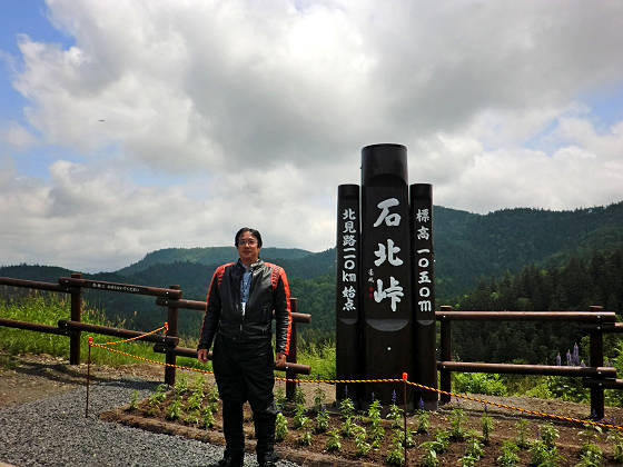 坂を上ってきて頂上の標高1050mの石北峠に着きました。