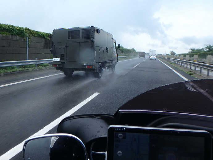 途中ゲリラ雷雨に遭遇し前方視界が悪い中、なんとか走っていました。
