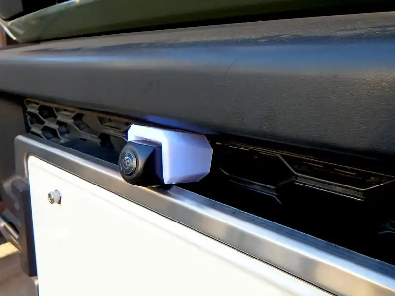 リフトアップしていると左直前の視認性確保のためにフロントカメラを設置しないと車検に通過しないようです。