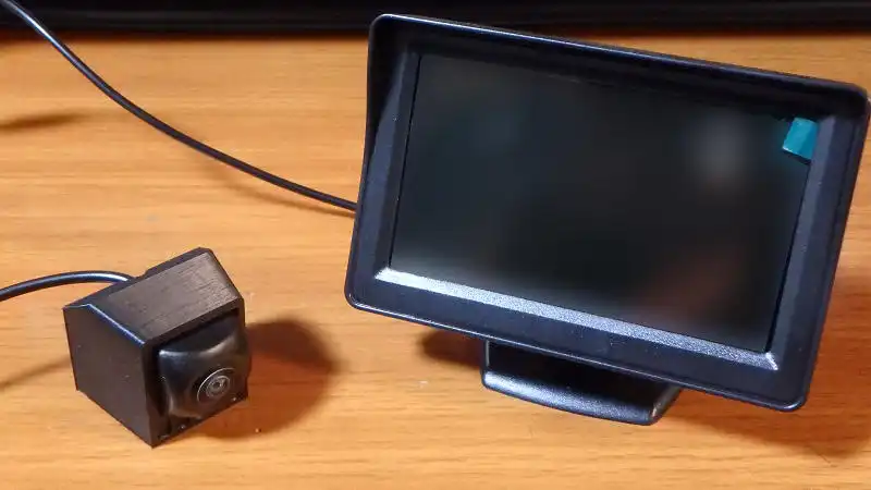 映像を映るモニターですが、最初はカーナビのAUX(補助入力)端子につなごうかと思いましたが、映像を映すためには「カメラの電源ボタン」「ナビのAVボタン」「AUXボタン」の三つを押さなければならないので手間がかかりすぎます。
