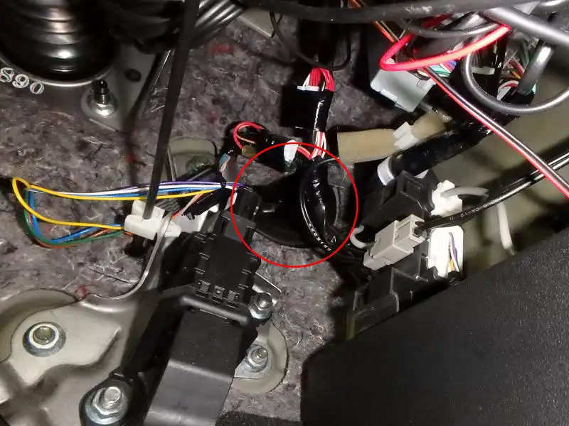 車内のここからケーブルを取り出しビデオ入力はモニターに接続して、カメラとモニターの電源はスイッチを追加してACC電源につなぎます。