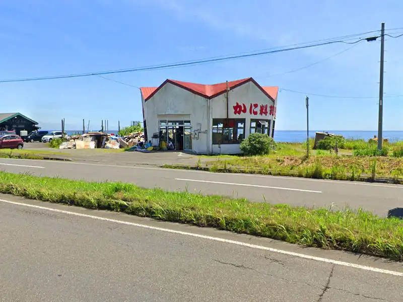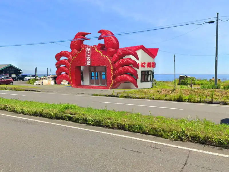 「カニ料理専門店」の文字や窓枠、入口横の電機盤やポストも再現した模型です。