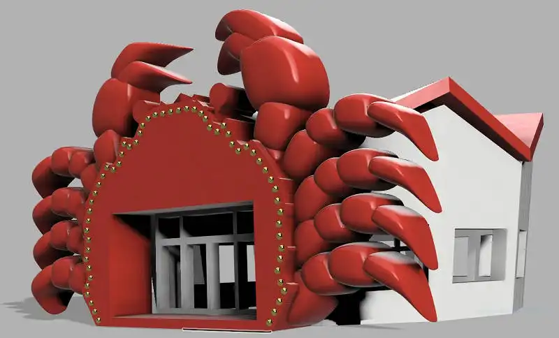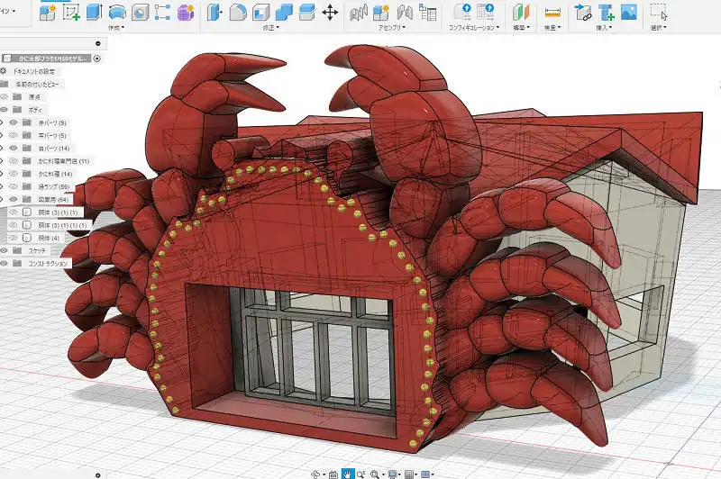 かにの立体造形や周囲のランプ、それに正12角形の独特な建物を作図しました。