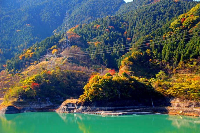 ダムの上からしばらく周囲の紅葉を眺めます。