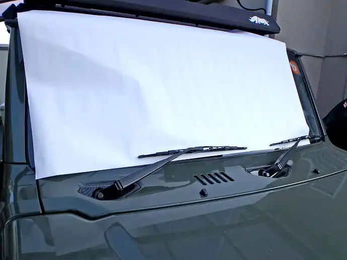そこでやったのがフロントグラスの外側に白い模造紙をのせて外を見せずでも多少明るさを確保するという方法です。